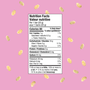 Brown rice, Tapioca fibre, Chicory root fibre, Rainbow sprinkles (sugar, potato starch, maltodextrin, rice bran oil, lemon juice, paprika, anthocyanins, turmeric, beet red, carnauba wax, spirulina extract), Sunflower oil, Vegetable Glycerin, Natural flavour, Rice syrup, Salt, Fruit and vegetable blend (apple, onion, broccoli, kale, cranberry, raspberry), Agar, Chickpea.