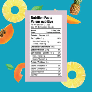Sunflower Seeds, Coconut, Pumpkin Seeds, Dried Pineapple, Dried Mango, Dried Papaya.