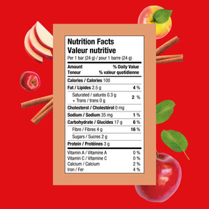 Say to hello to your new favourite Granola Bar - Apple Cinnamon Made with whole grain gluten-free oats our Granola Bars is low in sugar with only 2 grams of sugar per serving and high in fibre.