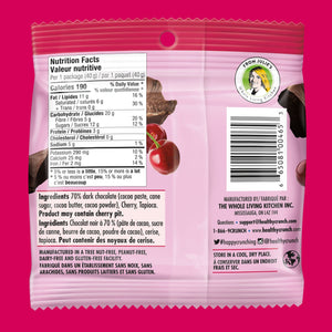 Just dark chocolate and cherries! Our Cherry Dark Chocolate Fruit are made with real, whole fruits and then wrapped in 70% dark vegan chocolate.