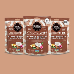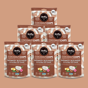 Our Healthy Crunch Coconut Chips are made with coconut and seasoned with various dressings all made with whole foods.